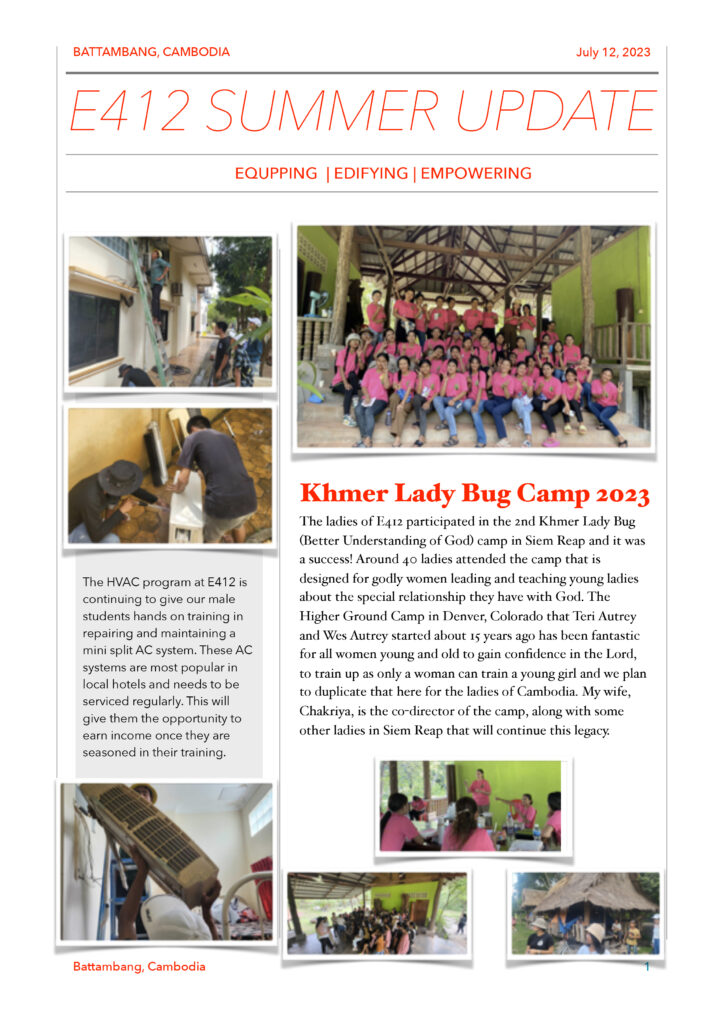 They have started a new radio ministry and it has resulted in several new additions to the church. He hosted and organized the Asian Mission Forum in Siem Reap for the first time and it was a great success! He was able to spend the last 3 months of his fa- ther’s life taking care of him and was able to give the eulogy at his funeral. He took his mom to Cambodia to spend quality time with her and to help her though this difficult time. They announced that they are expecting another baby and ask for prayers for a healthy and successful delivery.